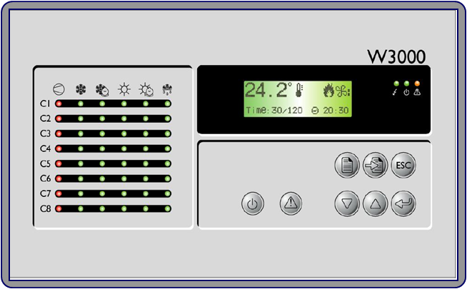 2. 機(jī)組控制與運(yùn)行管理:先進(jìn)的W3000 微電腦智能控制系統(tǒng),內(nèi)置克萊門特特殊設(shè)計(jì)的控制算法,更加突出機(jī)組的節(jié)能性和可靠性:FIFO 壓縮機(jī)運(yùn)行時(shí)間均衡功能,延長整機(jī)壽命;自動(dòng)負(fù)荷調(diào)整輸出功能,節(jié)能節(jié)電;通過與壓縮機(jī)的減載系統(tǒng)相配合,實(shí)現(xiàn)25-100%無級(jí)調(diào)節(jié);運(yùn)行參數(shù)調(diào)整和設(shè)定,適應(yīng)不同環(huán)境應(yīng)用;溫度壓力保護(hù)采用模擬量測(cè)量,可以預(yù)測(cè)預(yù)防故障發(fā)生,增加可靠性。